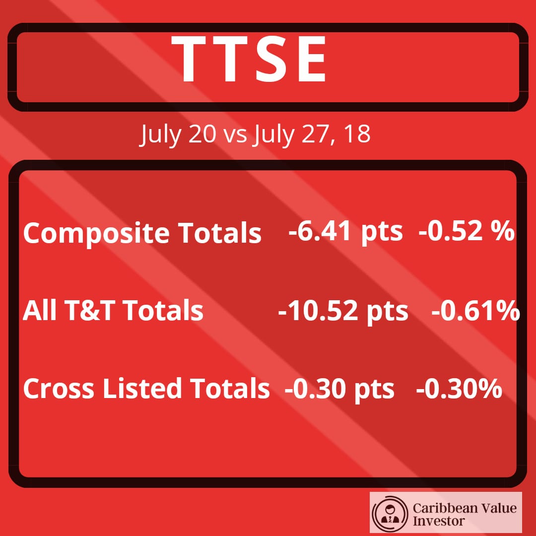 - The All T&T Index fell by 0.61% from 1,719.82 points on July 20 to close at 1,709.30 points on July 27th.